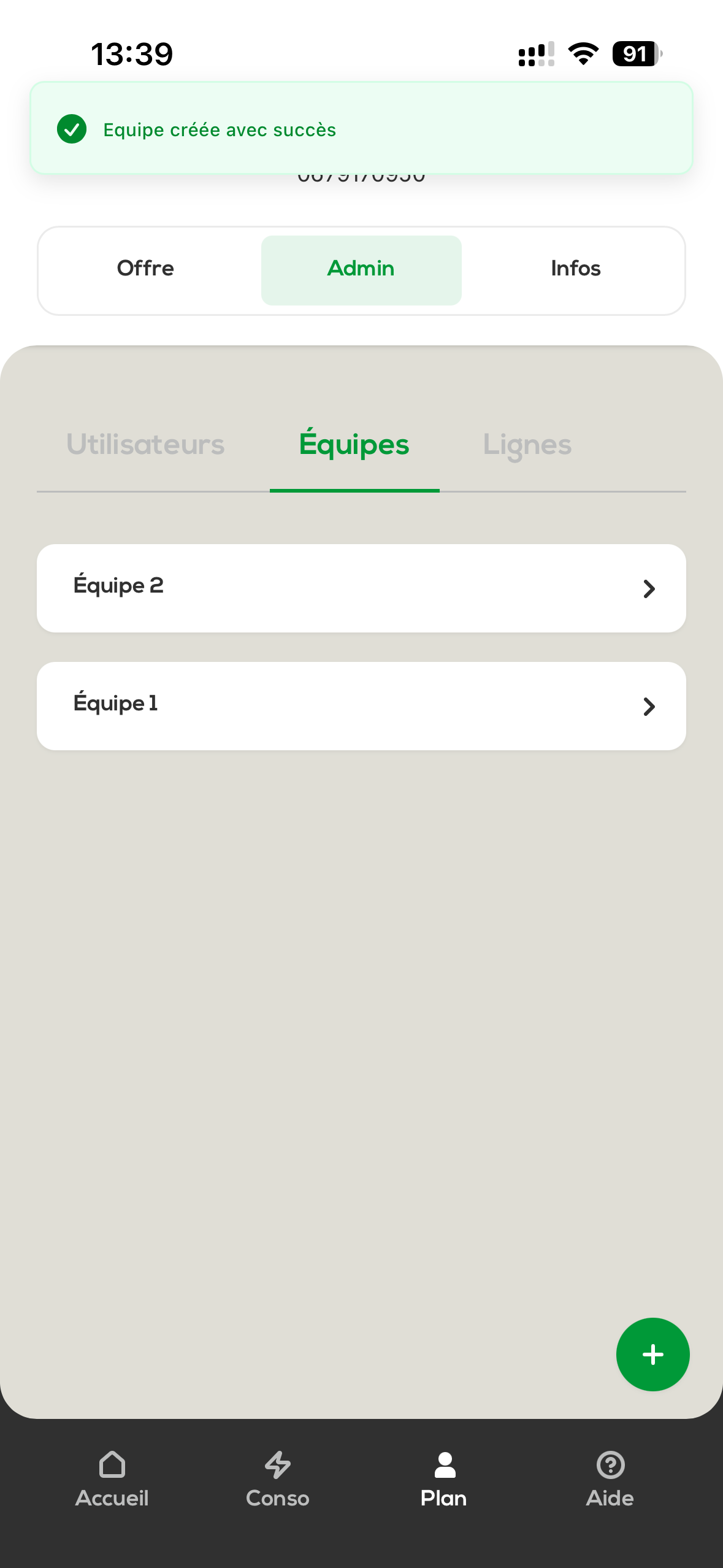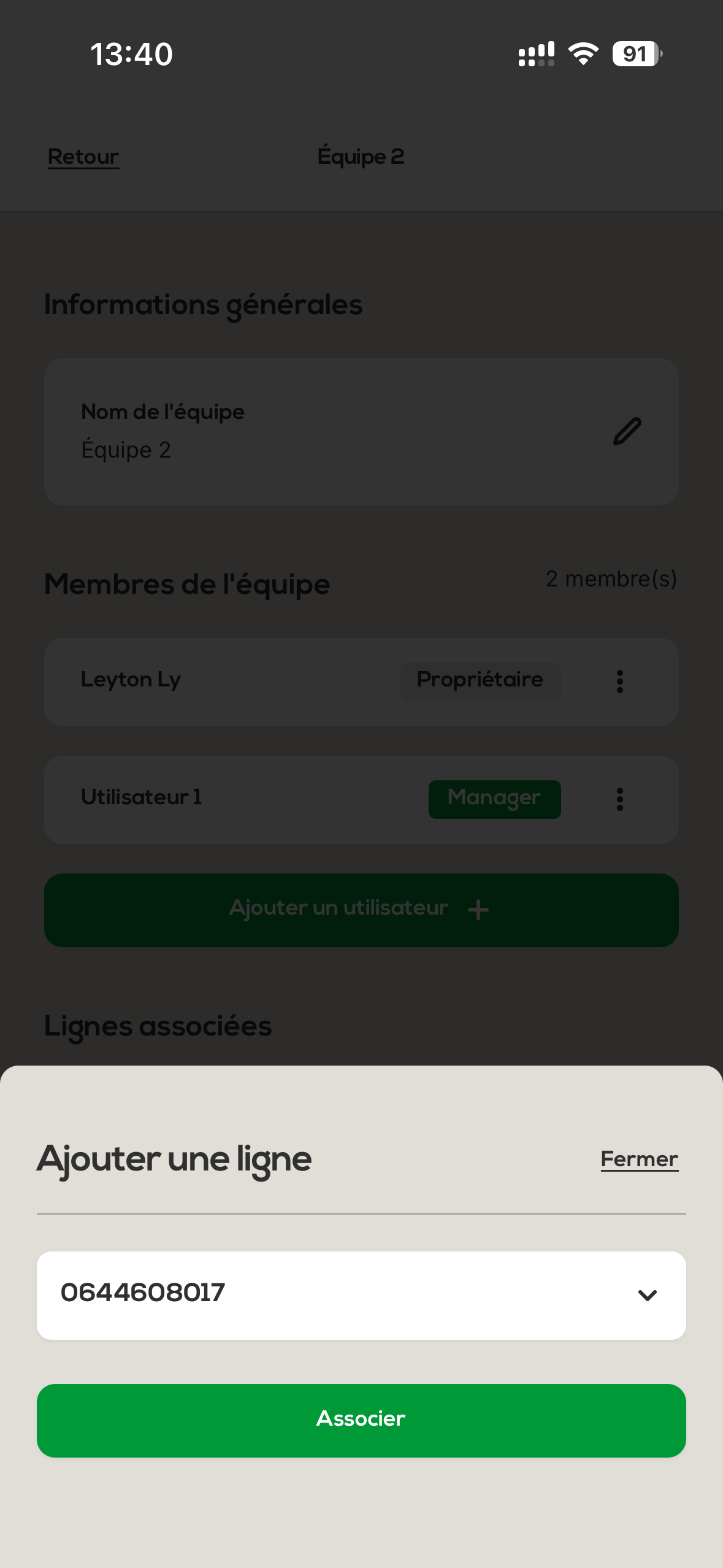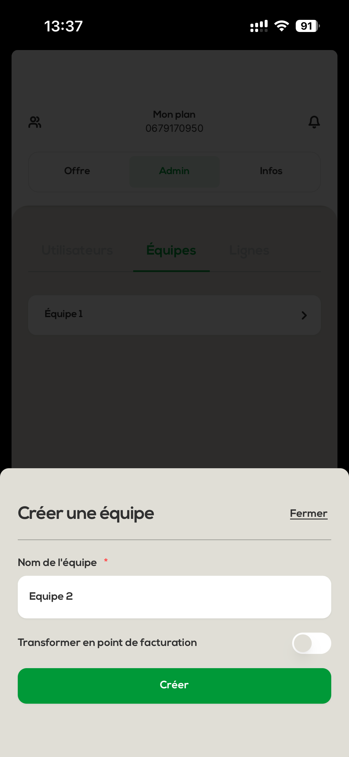 The mobile lines of your organization can be linked to the different teams you’ve created.