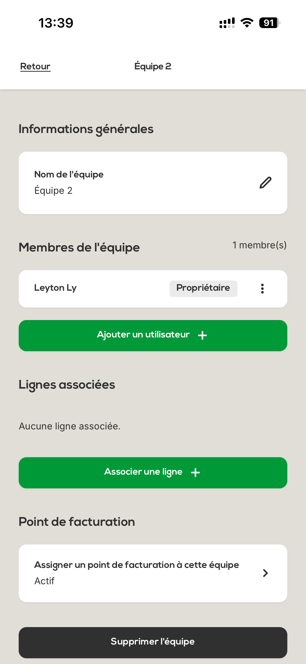 If needed, you can delete a team by clicking the « Delete » button.
