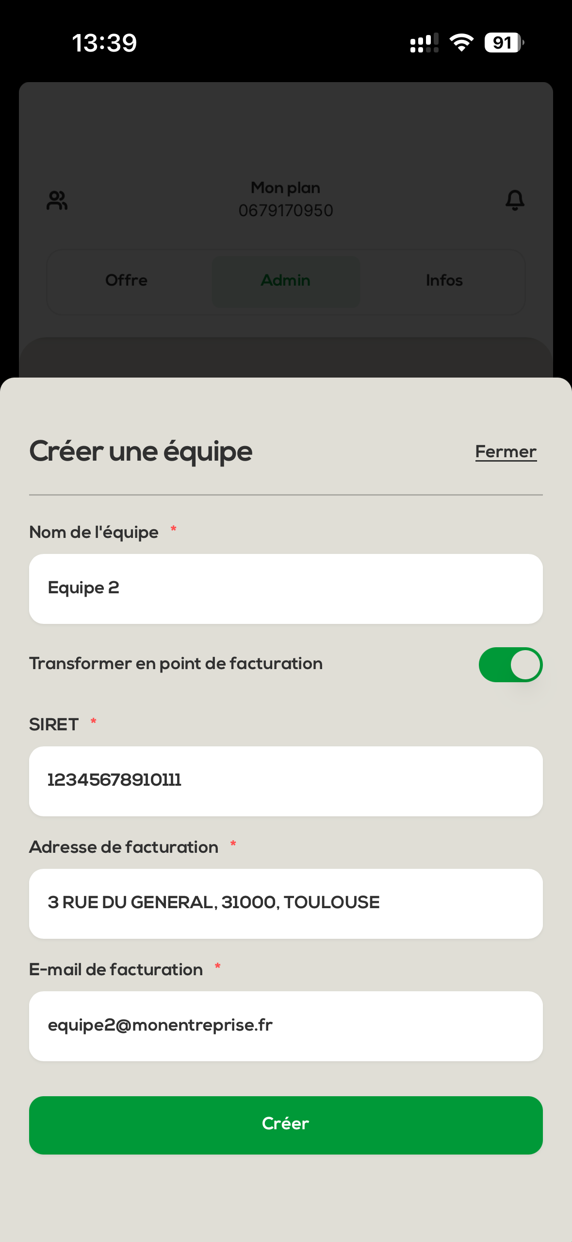 Once all the information is filled in and confirmed, click on « Create ». Your team is now created and available in your organization.