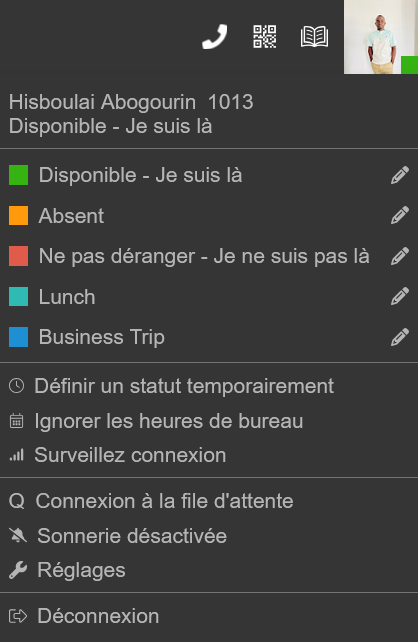 Accéder au menu de statut utilisateurCliquez sur votre statut utilisateur en haut à droite