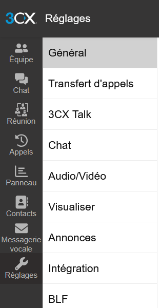 Accéder aux réglagesDepuis le Web Client Un1ty 3CX :