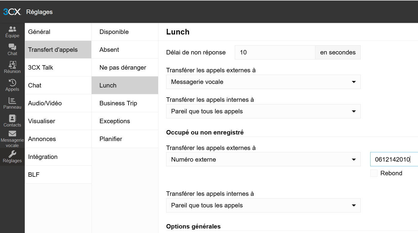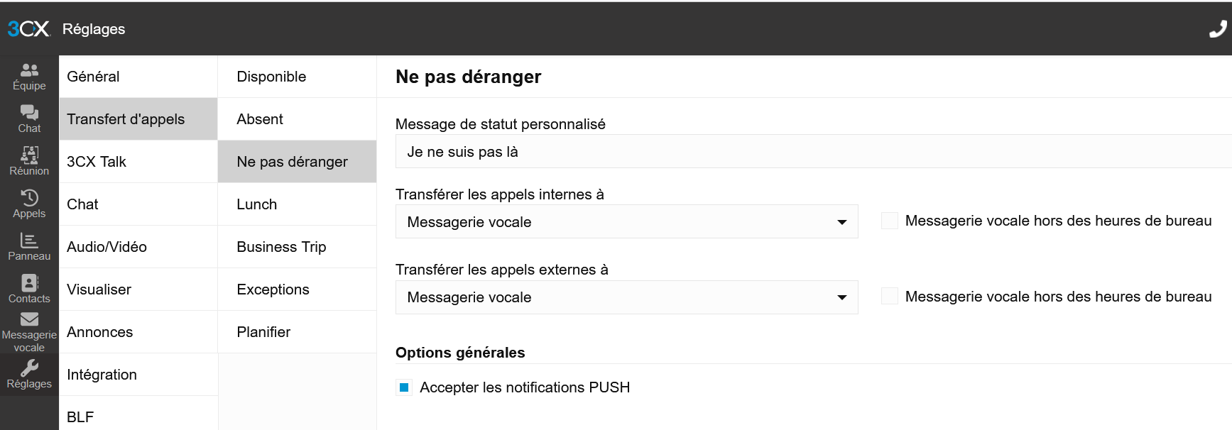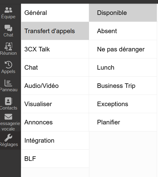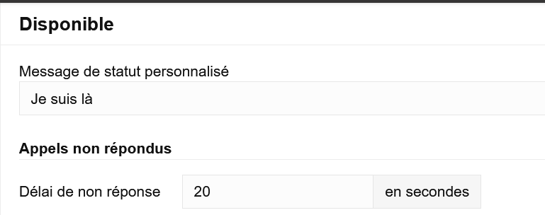 Configurer le comportement des appelsLe panneau de configuration du statut s’affiche à droite.