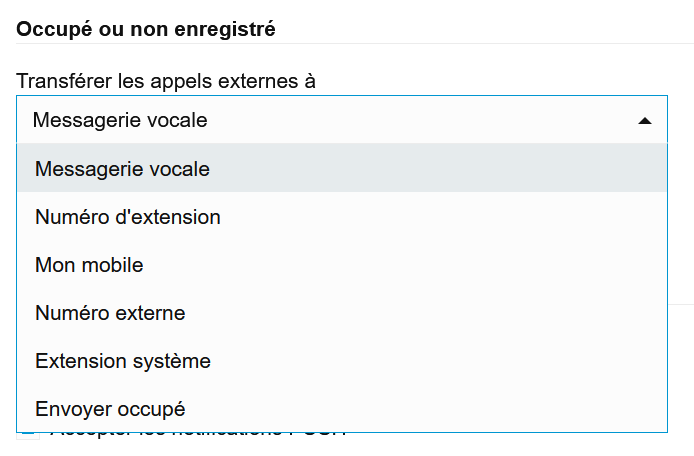 Occupé ou non enregistréDéfinissez le comportement lorsque :