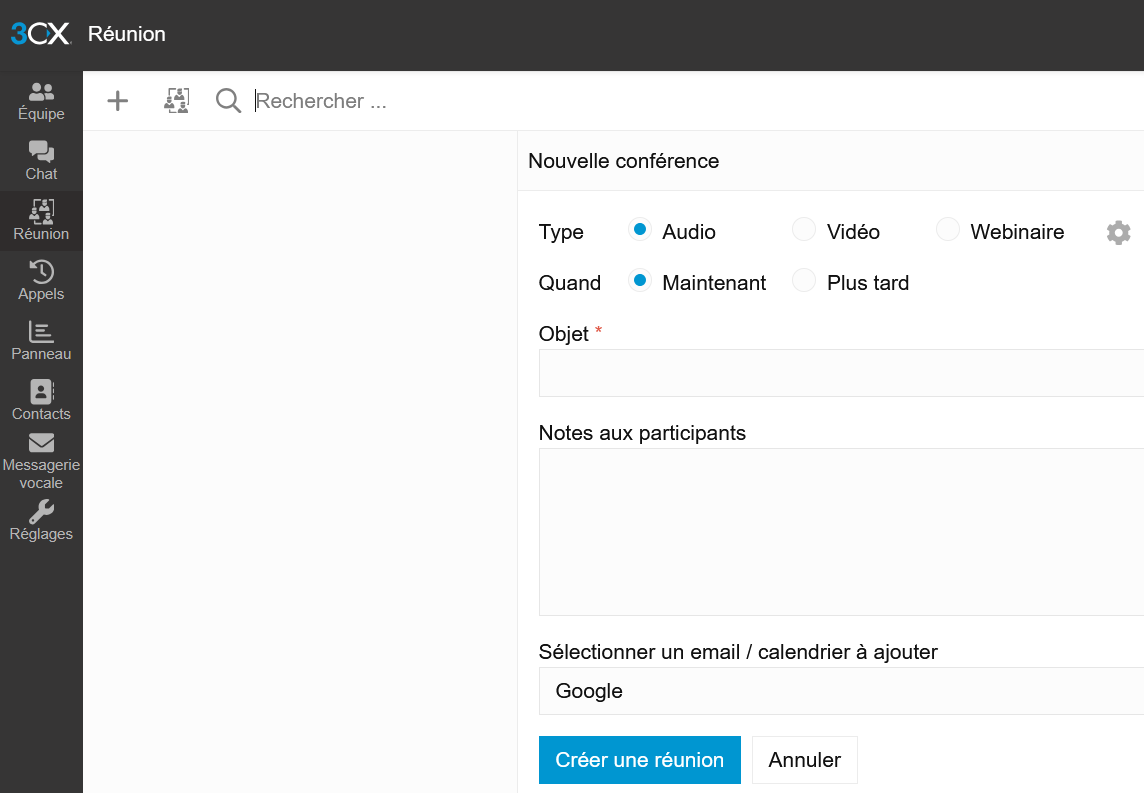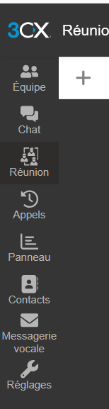 Accéder au module RéunionDepuis le menu de gauche du Web Client Un1ty 3CX :