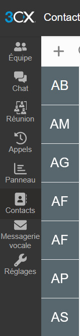 Accéder au menu ContactsDepuis le Web Client Un1ty 3CX :