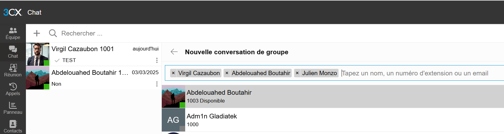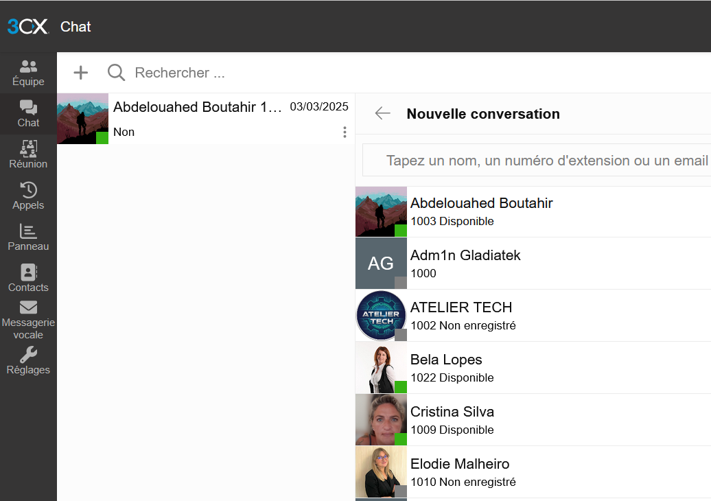 Accéder au module ChatDepuis le Web Client Un1ty 3CX :