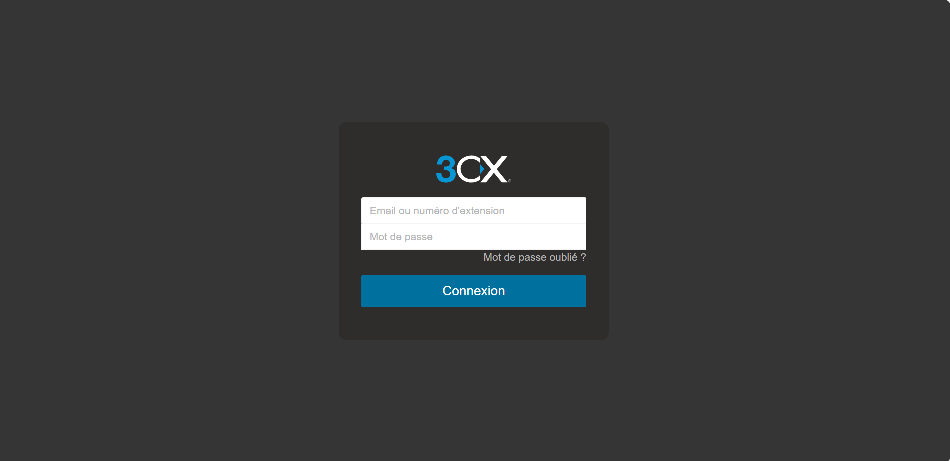 2. Connexion au Web Client Un1ty 3CXUtilisez un navigateur moderne (Chrome, Edge, Firefox, Safari).
