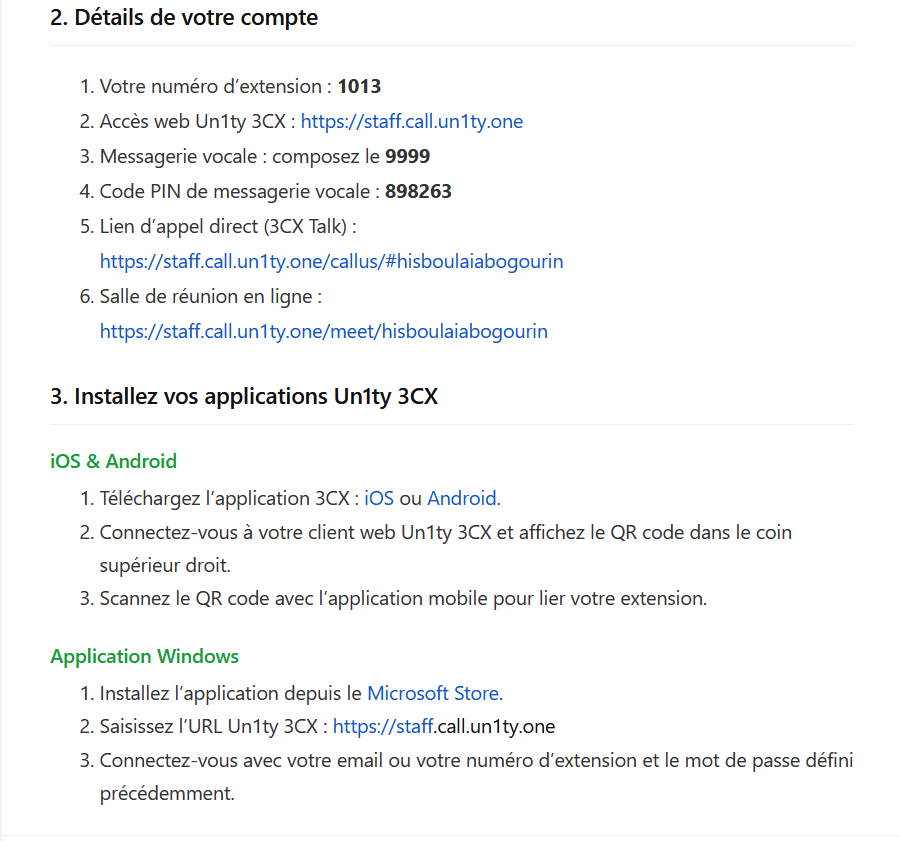 Bienvenue sur votre téléphonie Un1ty 3CX