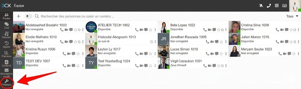 1. Accéder aux RéglagesDans le menu de gauche du Web Client, cliquez sur Réglages.