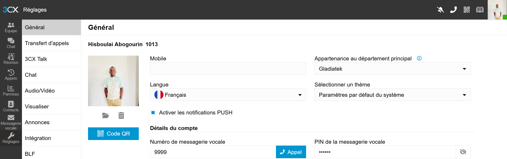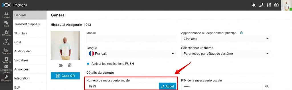 3. Localiser le numéro de la messagerie vocaleDans la section Détails du compte, vous trouverez :
