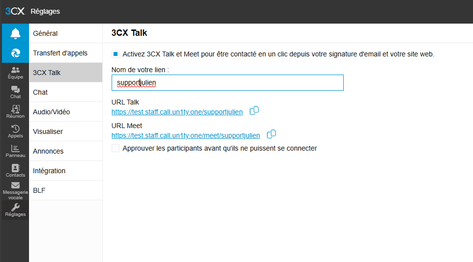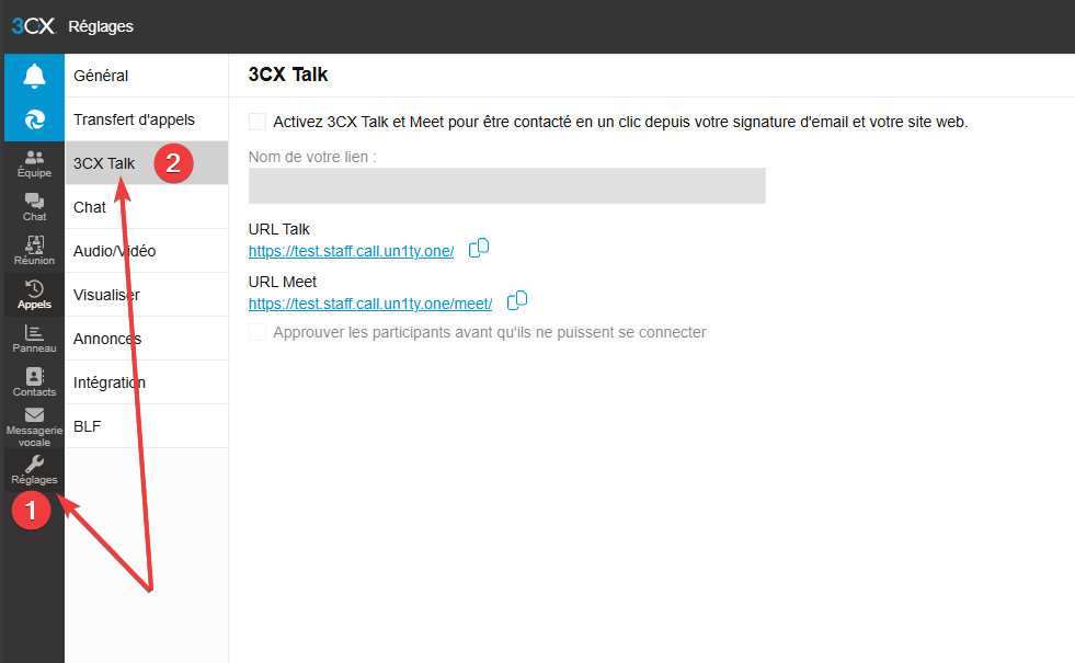 Cliquez sur la section 3CX Talk dans la liste des options.