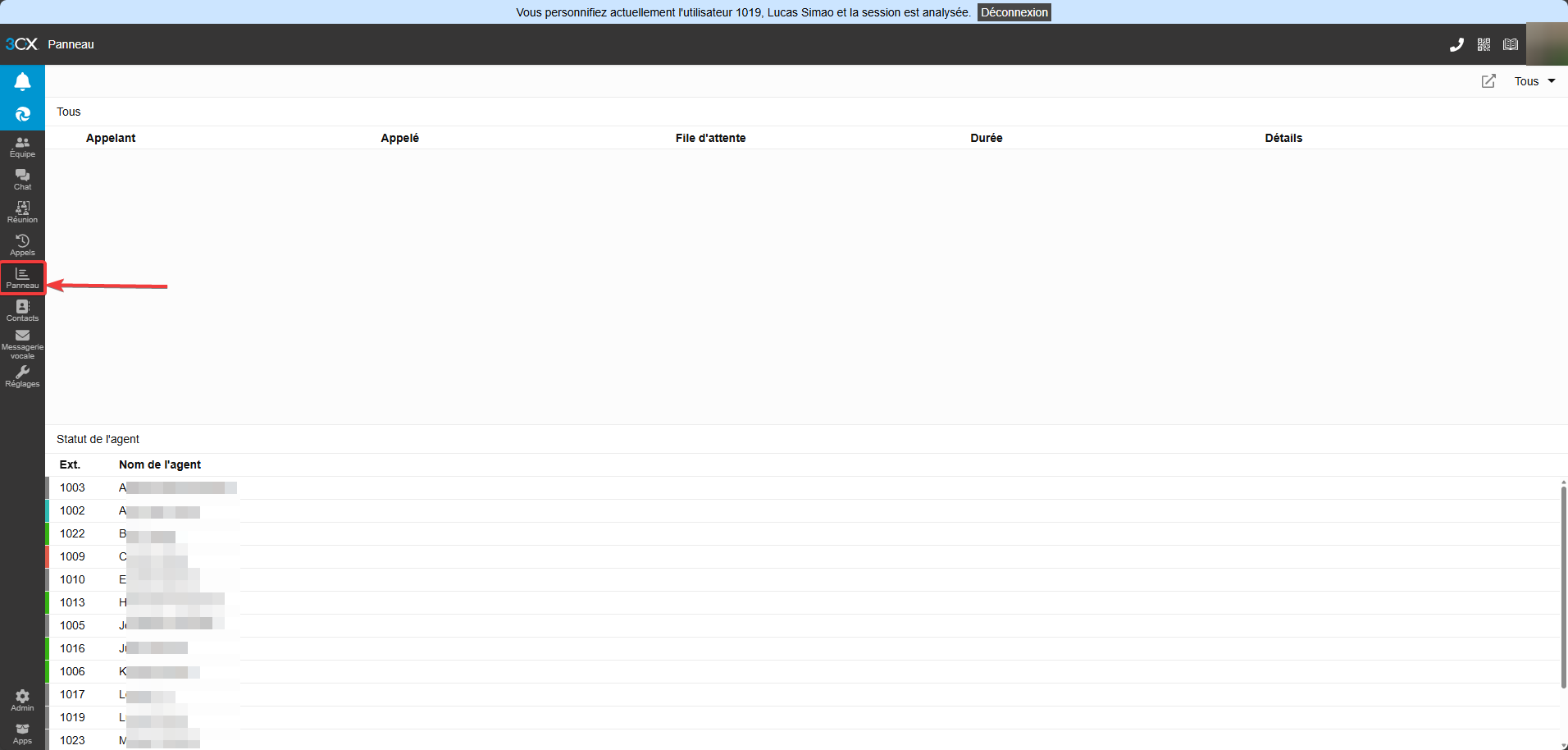 2. Intercepter un appel qui sonneDans le menu latéral gauche de votre Web Client, cliquez sur l'icône "Panneau" (ou "Panel").