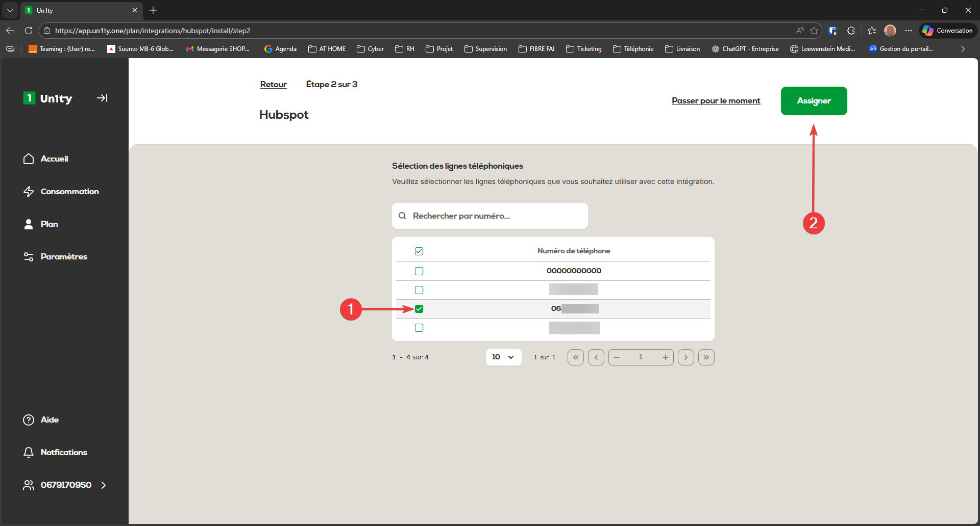 Cochez le ou les numéro(s) de téléphone concerné(s).