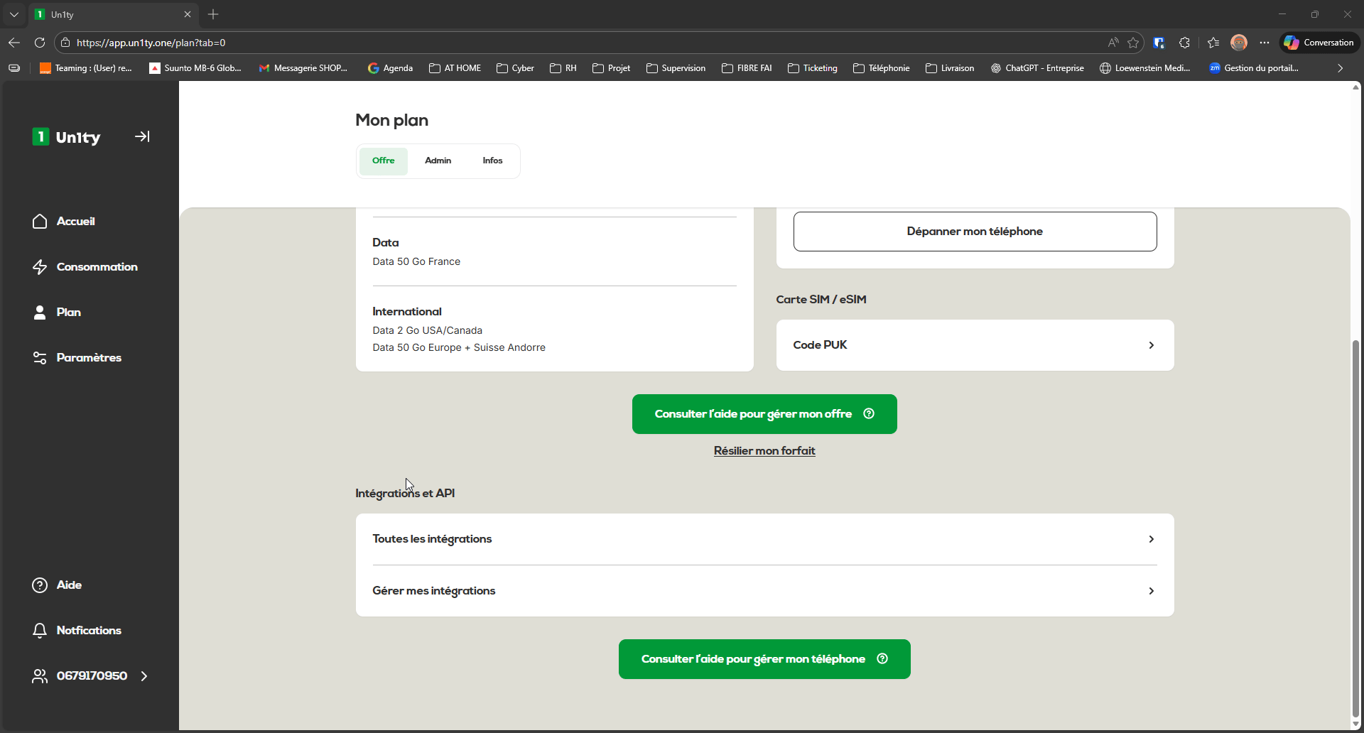 Dans le menu latéral de gauche, cliquez sur l'onglet Plan.