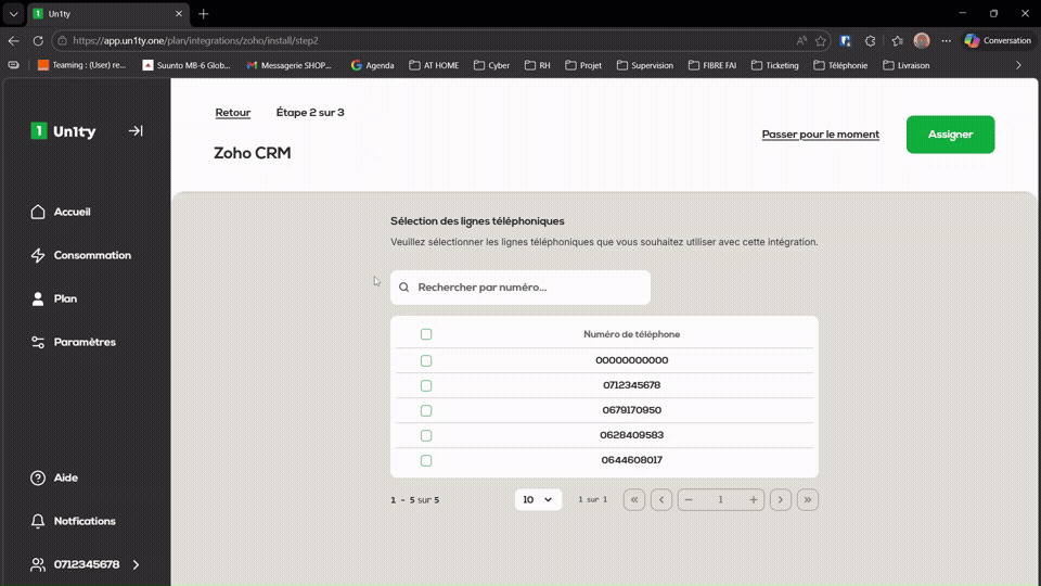 Vous devez maintenant définir quelles lignes Un1ty seront liées à Zoho CRM.