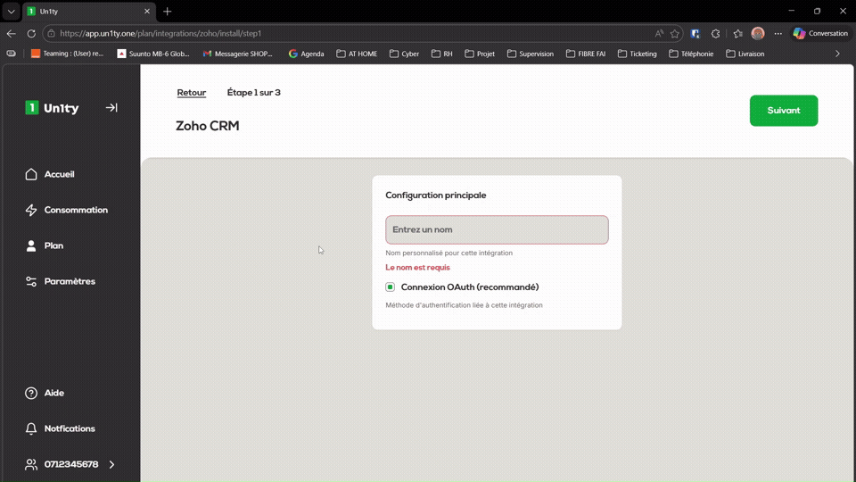 Nom personnalisé : Renseignez un nom explicite (ex : IntégrationZohoUn1ty).