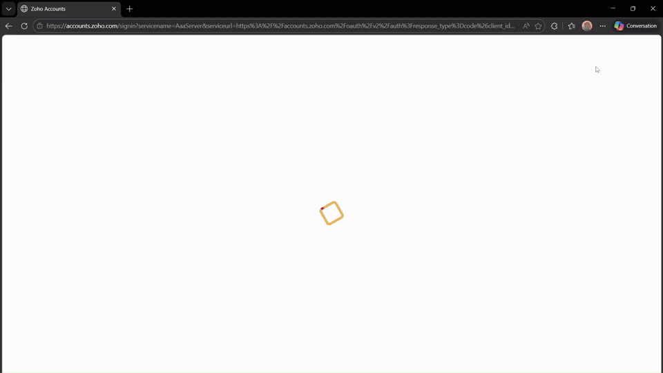 Le système vous redirige maintenant vers l'environnement sécurisé de Zoho pour finaliser la passerelle.
