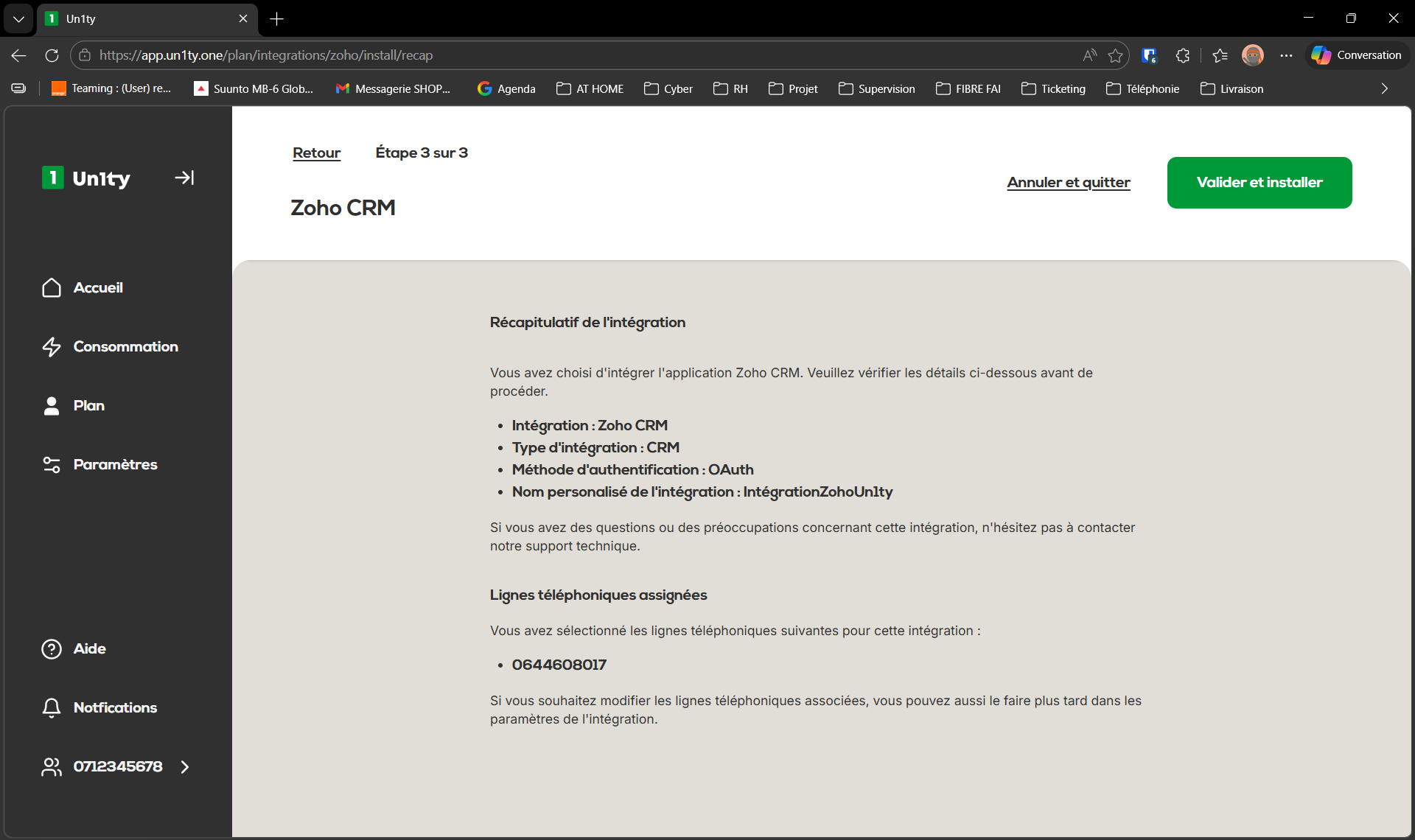 Si tout est correct, cliquez sur Valider et Installer.